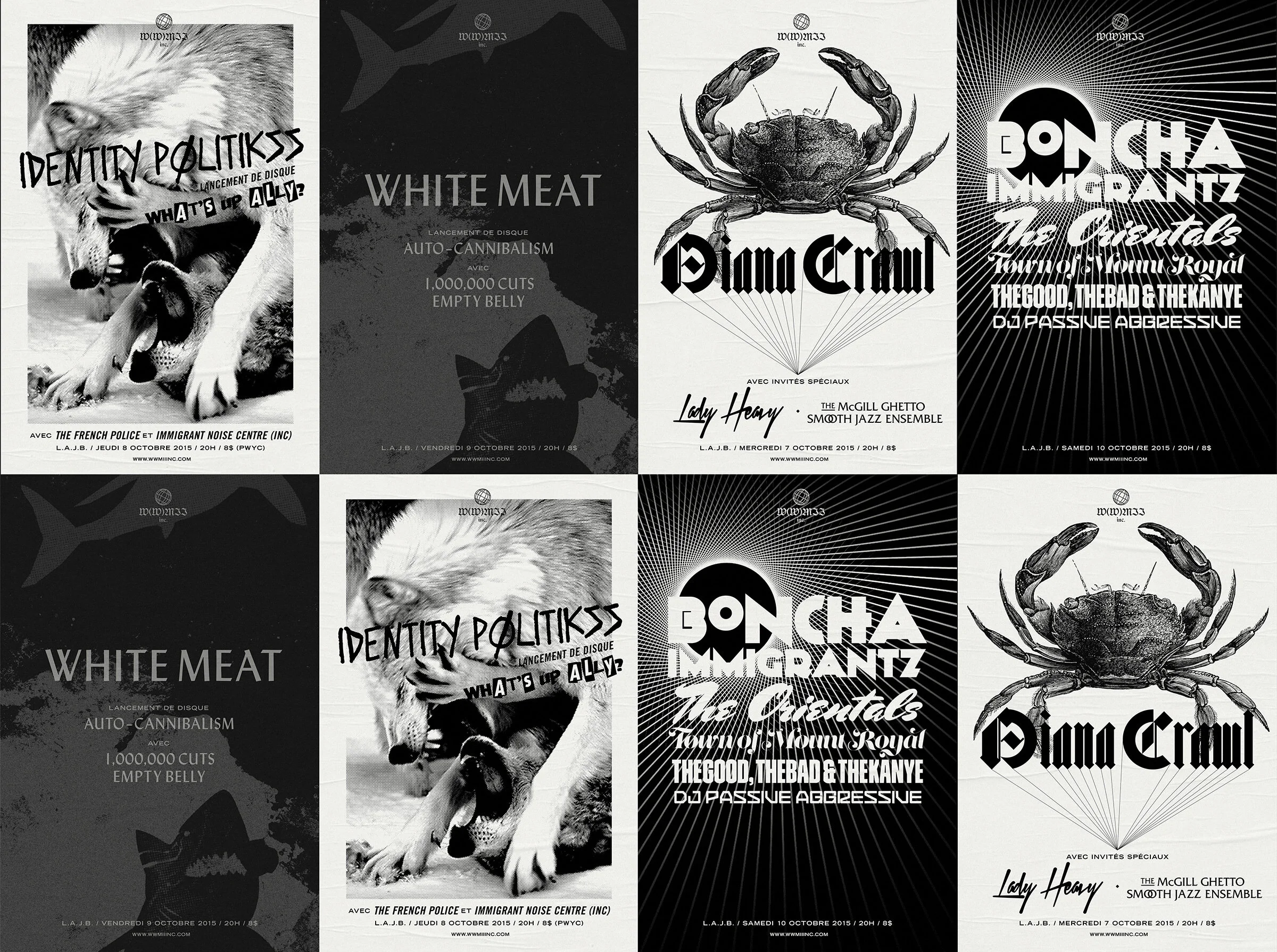 Satirical campaign (street posters and promo video) for WWMII Inc., a fictive record label created as a critique of the whiteness of the performance art world.